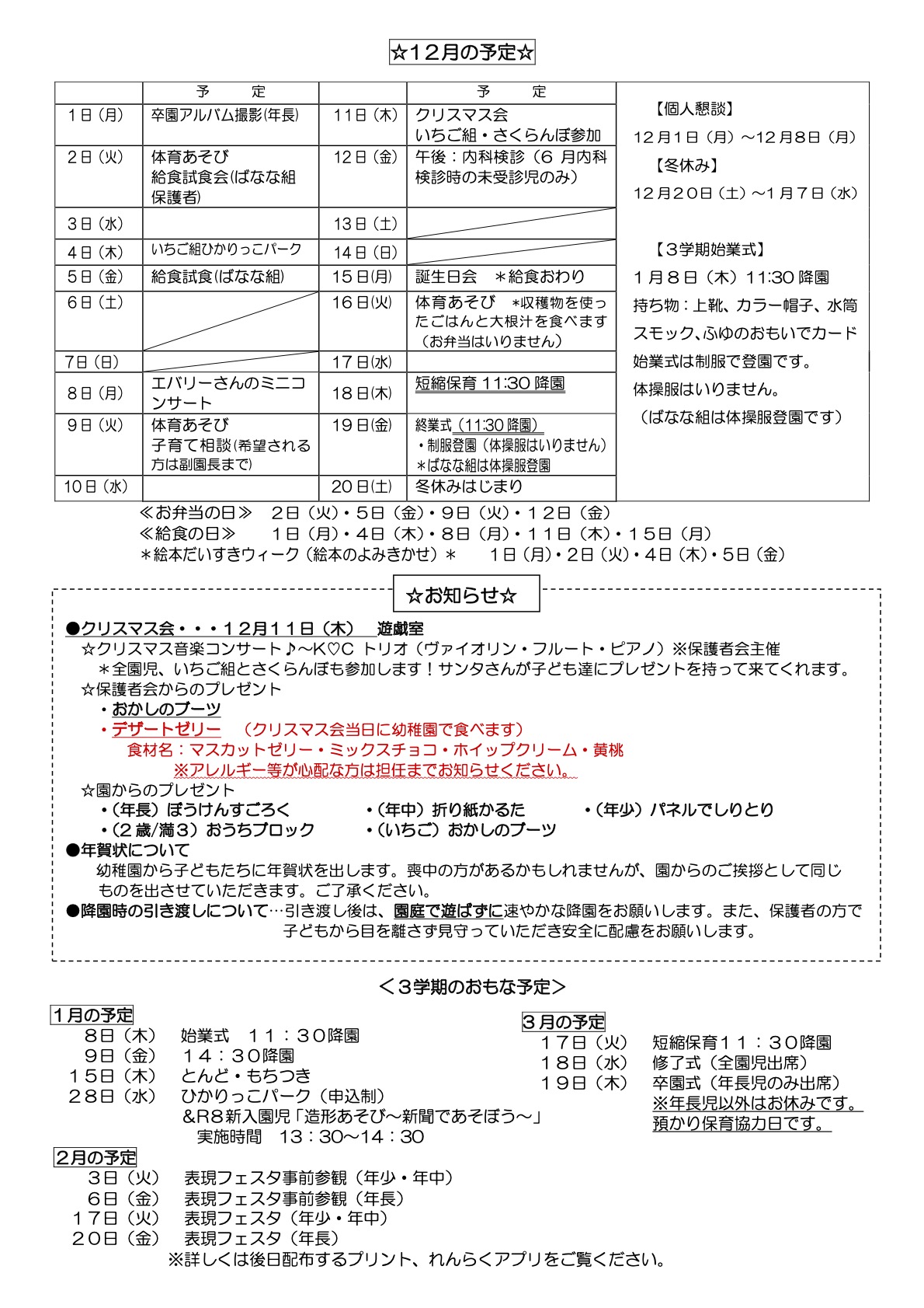 在園児向けお知らせ