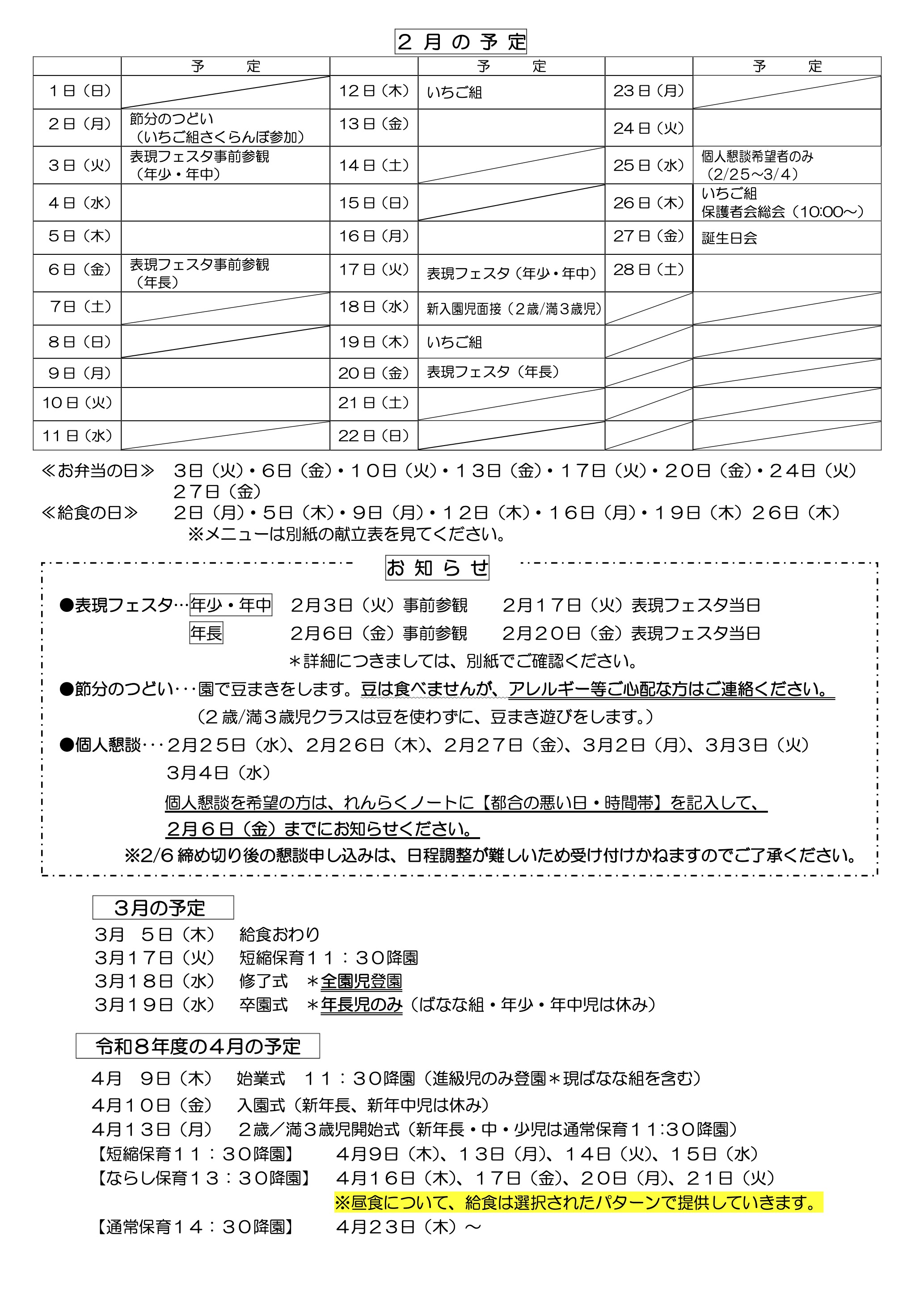 | 26.01.27 | 「園だより」掲載致しました。 |