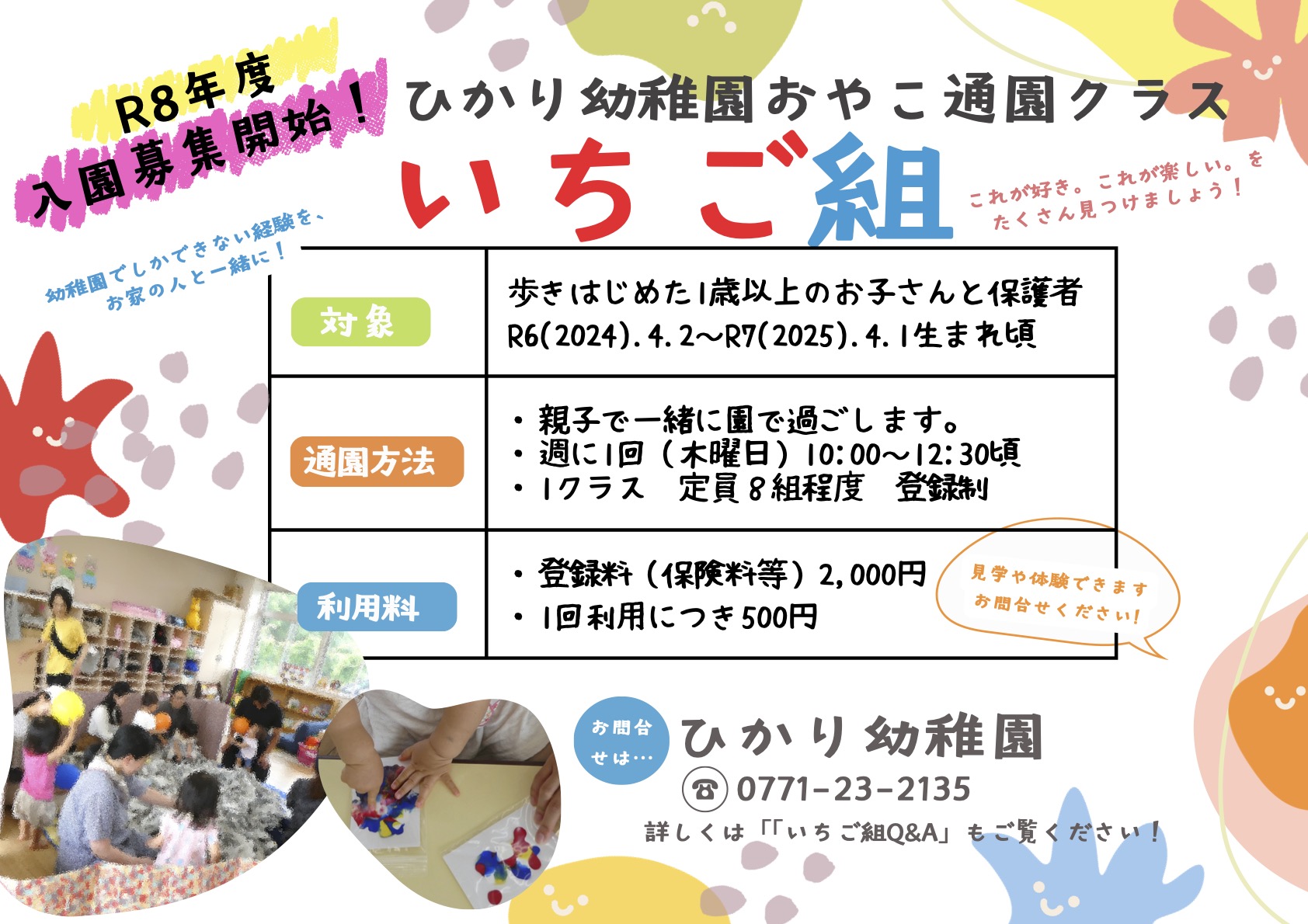 ひかり幼稚園では、2歳以上の未就園児を対象に、幼稚園に親しみ、先生や友達と遊んだり