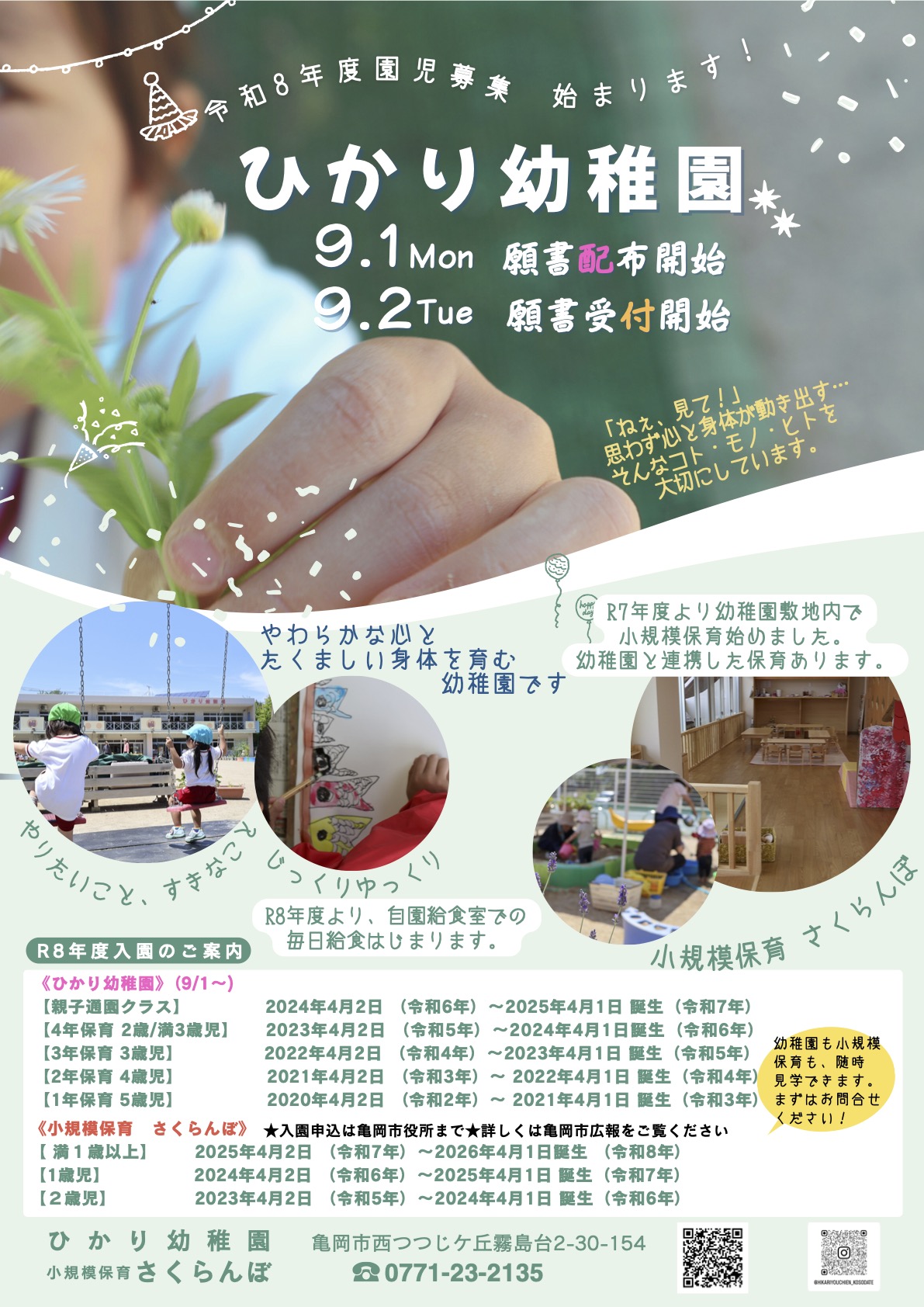| 24.05.01 | 「ひかりっこ☆パーク」「園庭開放」の更新を致しました。< |